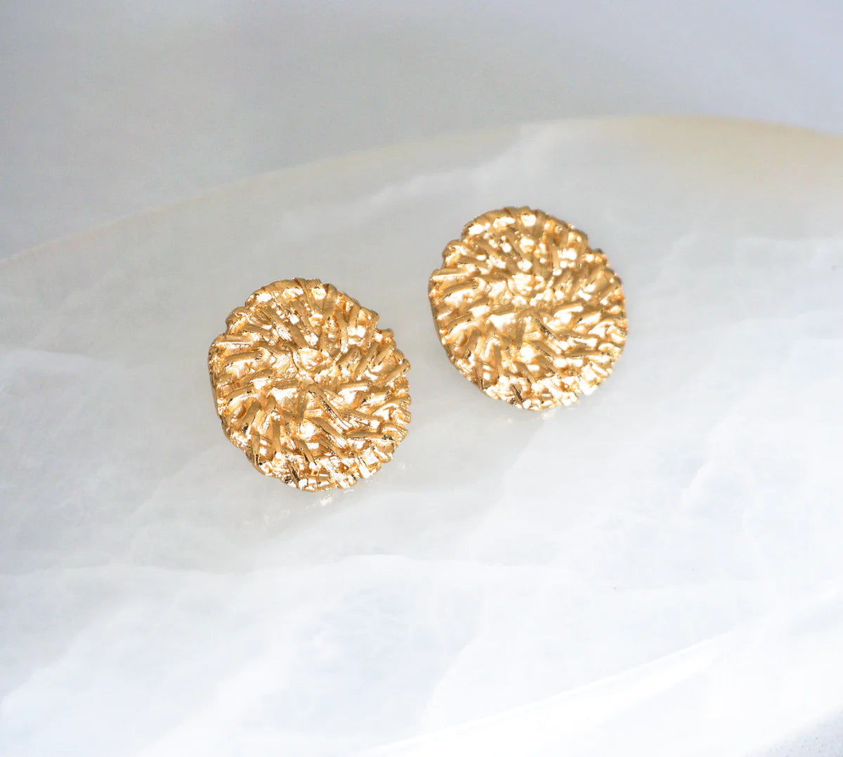 - Material : Bronze and .925 silver post with 22 carat gold plating