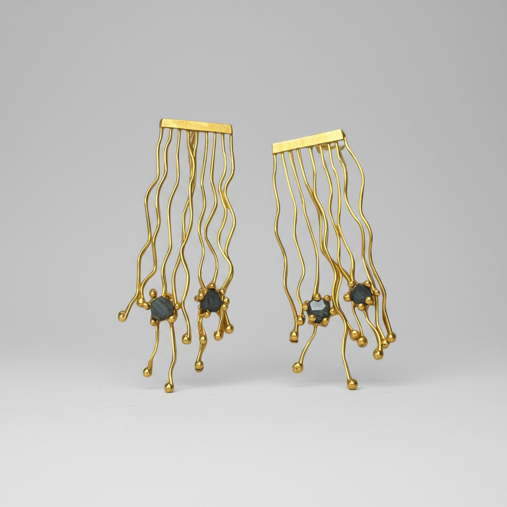 Material: bronce baño de oro de 24k y zafiro en bruto
