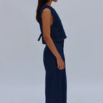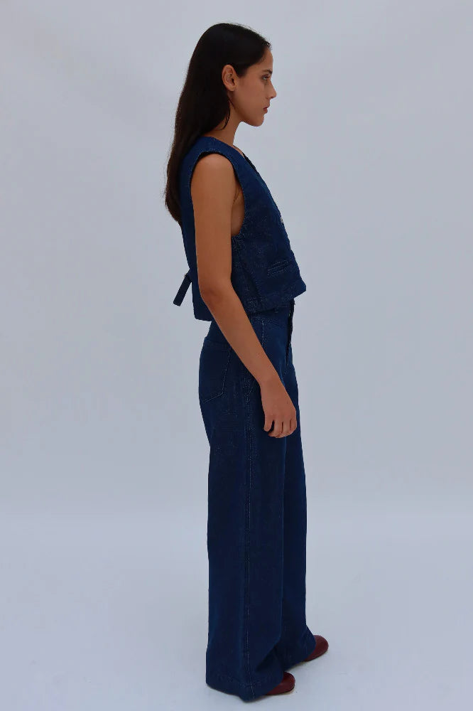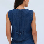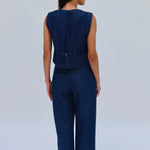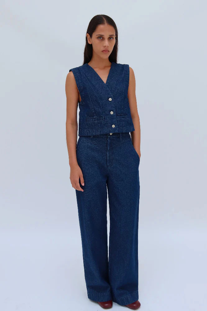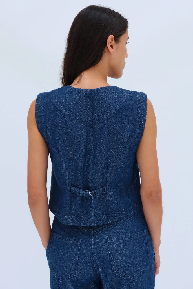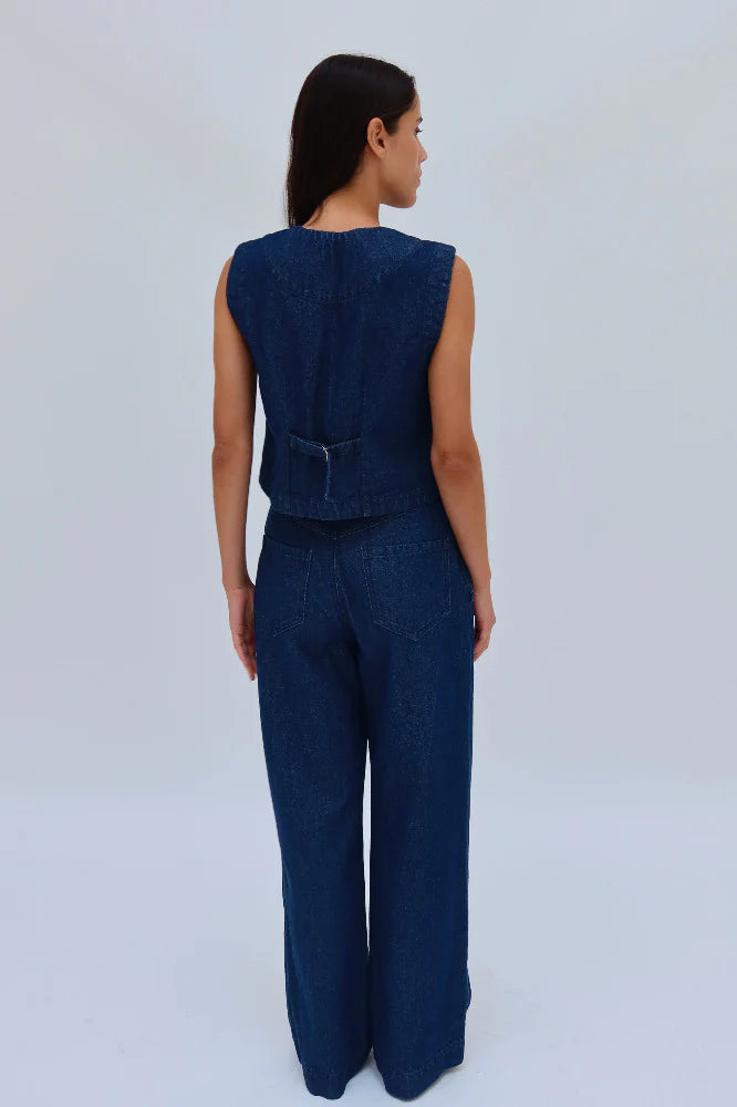 Silueta clásica ajustada y abotonadura al frente. Bolsillos pequeños delanteros y hebilla metálica en espalda que ayuda a ajustar la prenda en cintura.