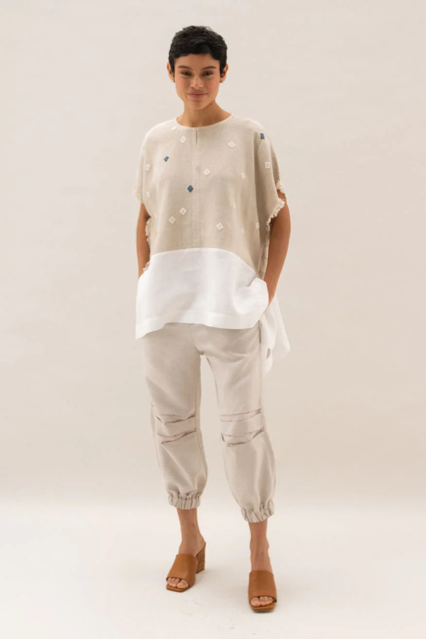 - Técnica: Grafico bordado elaborado a mano con técnica de pespunte por artesanas de San Juan Chamula, Chiapas.