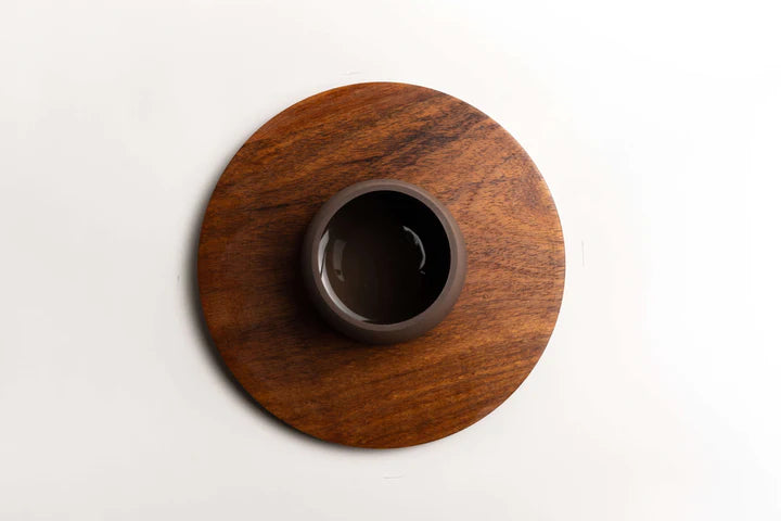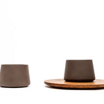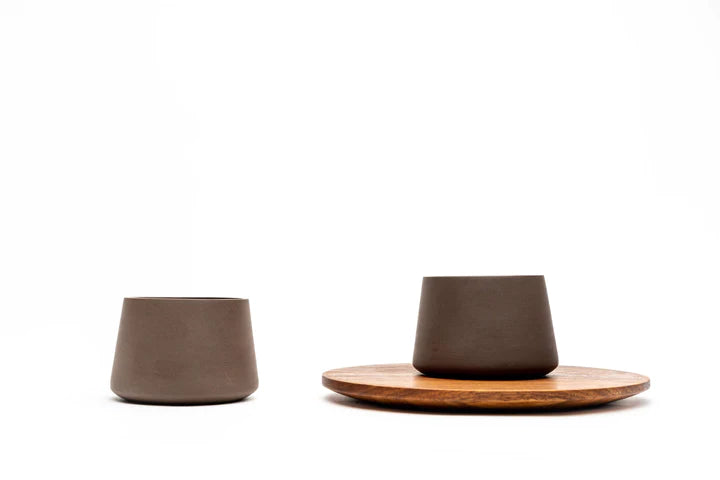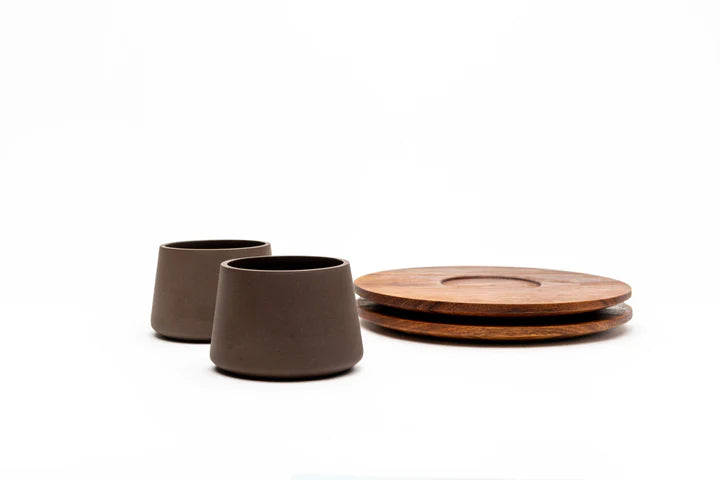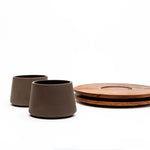 Juego de 2 tazas de pared sencilla; cada una con plato de madera.